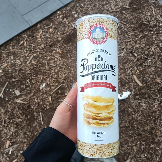 From Aldi's middle aisle! These hit the spot so well - crispy, light, thin, aromatic. Almost a salty flavour but not quite. Yummy. Comes with a plastic tray though, and a deceptively elongated chip tube. #lentils #chips #crisps #snack #glutenfree
