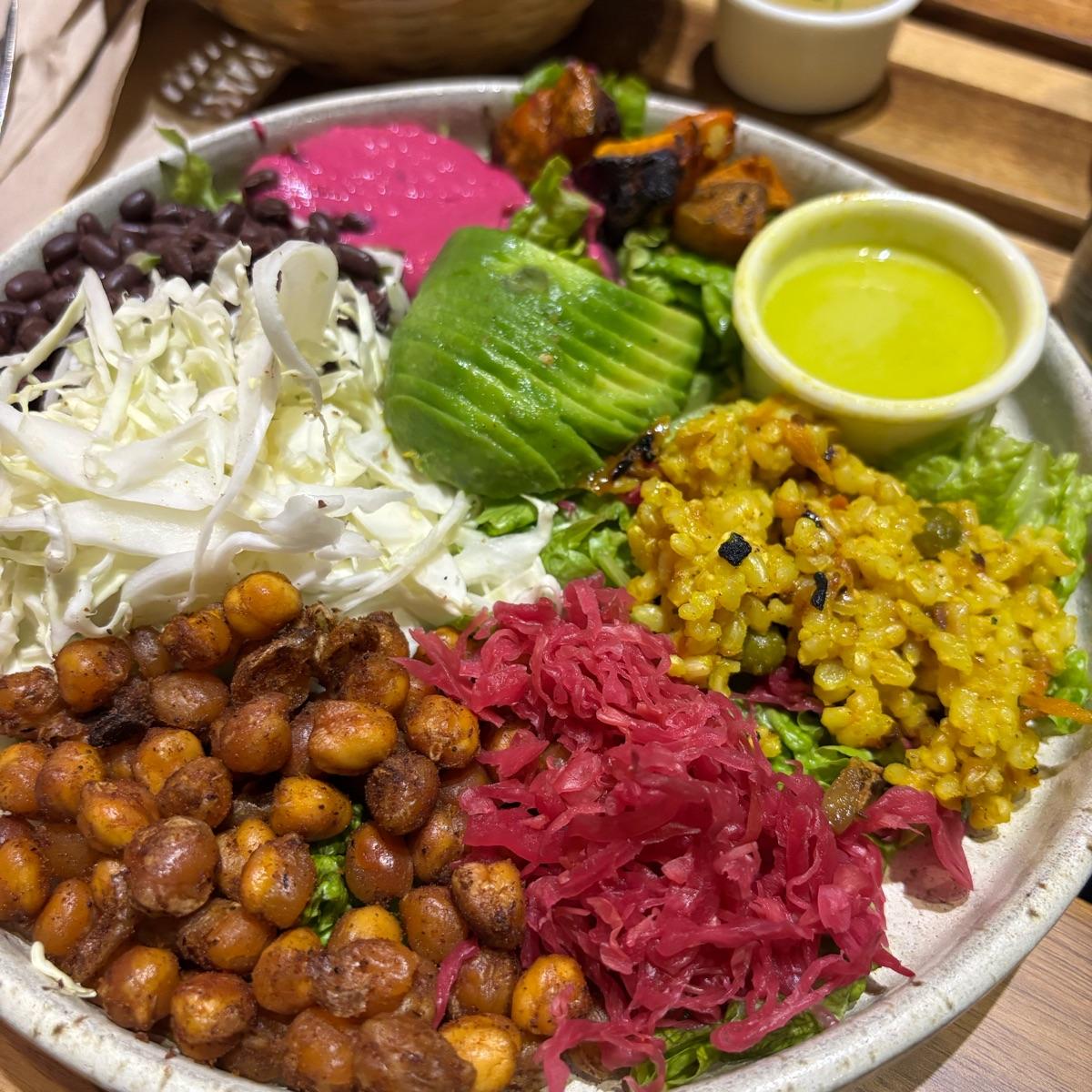 Me pedí esta ensalada porque me copó leer que tenga porotos aduki y ademas un extra de legumbre los garbanzos que vienen como tostaditos con pimentón. Tambien me gustó que traiga hummus de remolacha, palta y algo de verduras como repollo y lechuga. La parte de "calabaza al horno" medio que ni existió porque fueron 3 pedacitos diminutos realmente chicos porque no llegaban a ser 2x2 pero bueno el resto de la ensalada estaba MUY bien. Yo creo que le faltaria tener un poco de tofu, menos de repollo y seria mega completa.