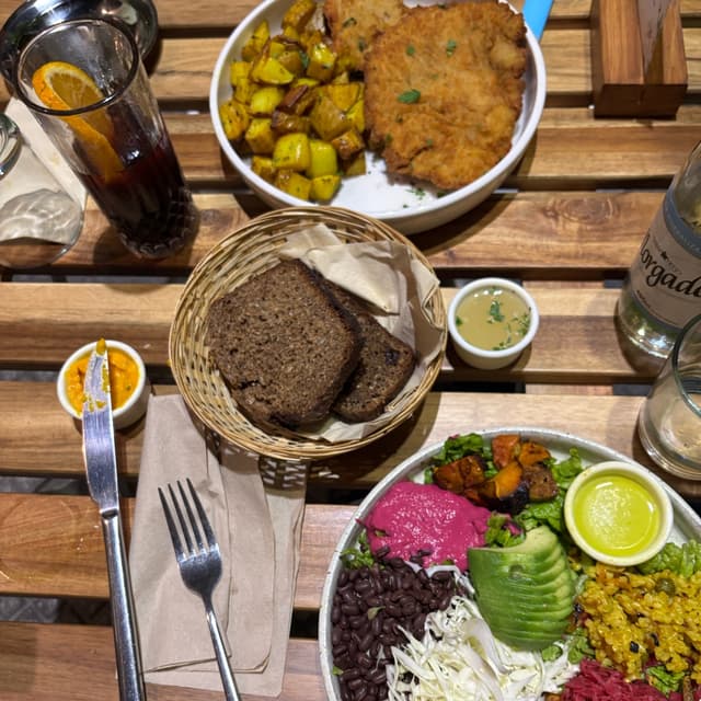 P.D: fui con una amiga que es vegetariana y ella se pidió el plato (vegano) de milanesas (traen 3 de diferente tamaño se puede ver en la foto publicada) de girgolas (rebozadas en panko y coco) con papas asadas. Cuesta $26.000