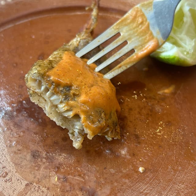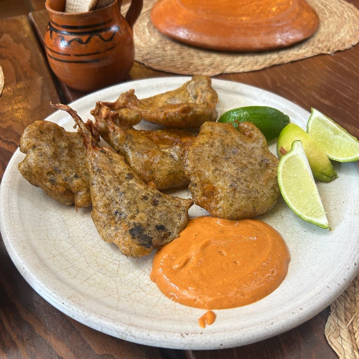 Amazing entree! This is a “fish” alternative of breaded oyster mushrooms with lemon and chipotle sauce. The taste was spot on and the texture I gotta say a bit creepy!