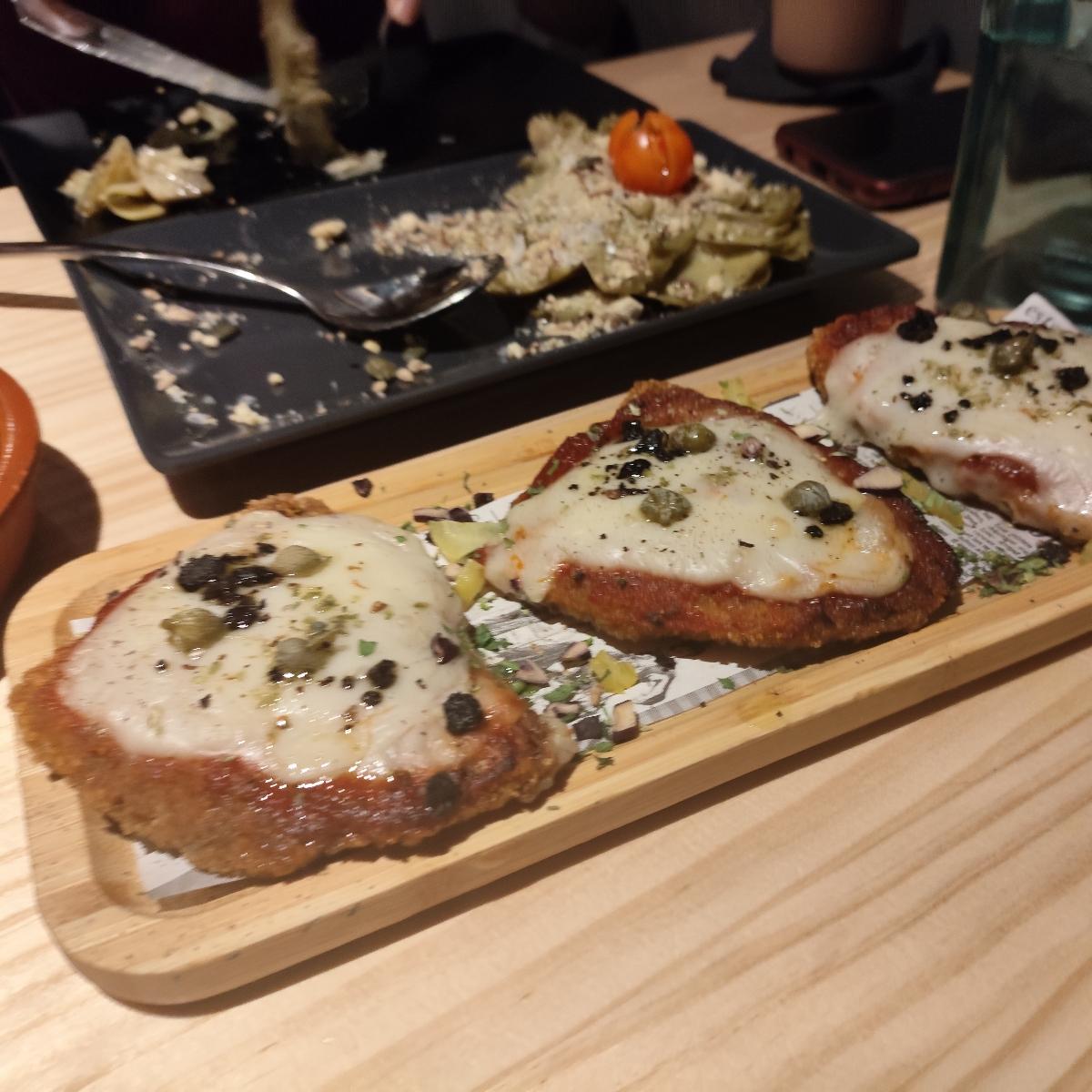De la mejores que he probado. No solo está rica la milanesa en sí y como está cocinada (frita o al horno, no supe distinguir), sino que la preparan "a la napolitana" con una salsa de tomate casera sabrosa y un queso derretido que disimula bastante que es vegano.