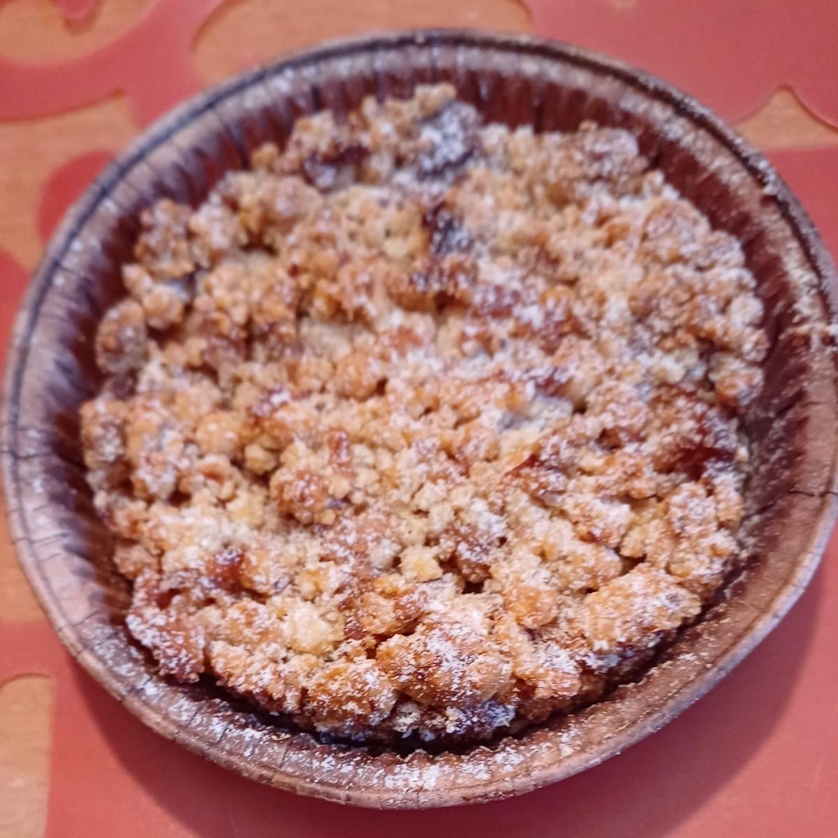Monoporzione di sbriciolata che profuma di mela, con pasta frolla vegana. Contiene tofu ma non ne ho sentito il sapore. Dolce discreto ma per i miei gusti non molto interessante.