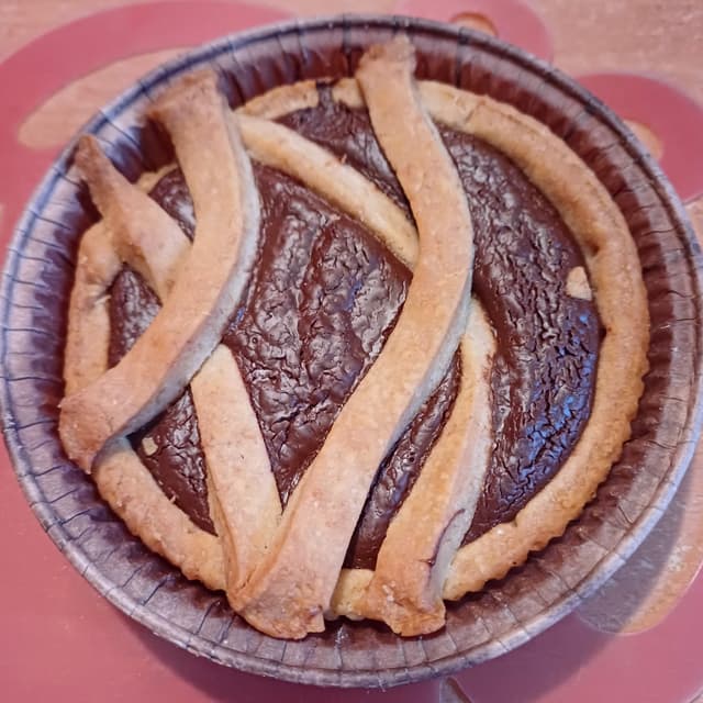 Crostatina monoporzione bella e buona. La frolla é freschissima e friabile, e la crema di nocciola nutellosa quanto basta 😋.