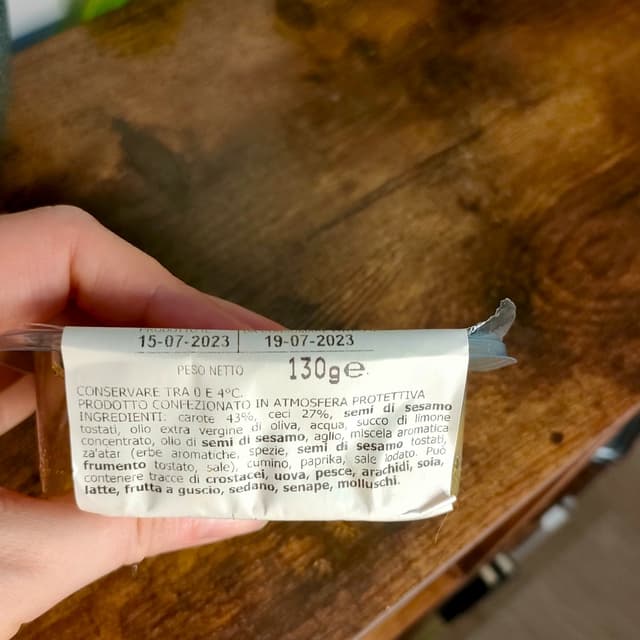 Hummus realizzato dalla gastronomia di Esselunga,buono e saporito.