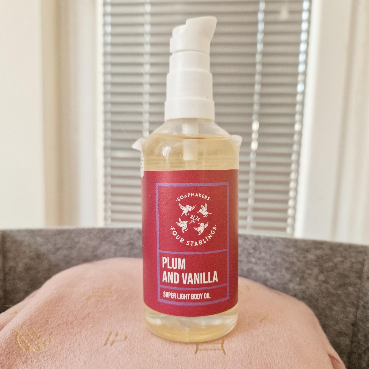 I love this body oil! The ingredient list is very clean and natural. It smells like fruity vanilla, but the aroma is very mild because it comes from natural oils and not perfume. It is not very oily, and the skin absorbs it pretty quickly. Very easy to use. I really like it!