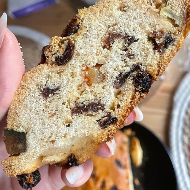 Comunque buono, ma non buonissimo nel senso io non conoscevo il pan dolce quindi non ho comparazioni da fare. Questo era buono, ma io mi aspettavo un tipo pan dolce morbido invece é quasi duro, croccante, ma quasi secco. L ho trovato un mix tra cantuccio e un pandoro secco. Si fa mangiare e anche tanto 😆 pensavo avesse gocce di cioccolato invece ha uvetta e canditi e secondo me anche semi di finocchietto. Mi da l idea si un dolce natalizio, se siete fan di quesi ingredienti provatelo.