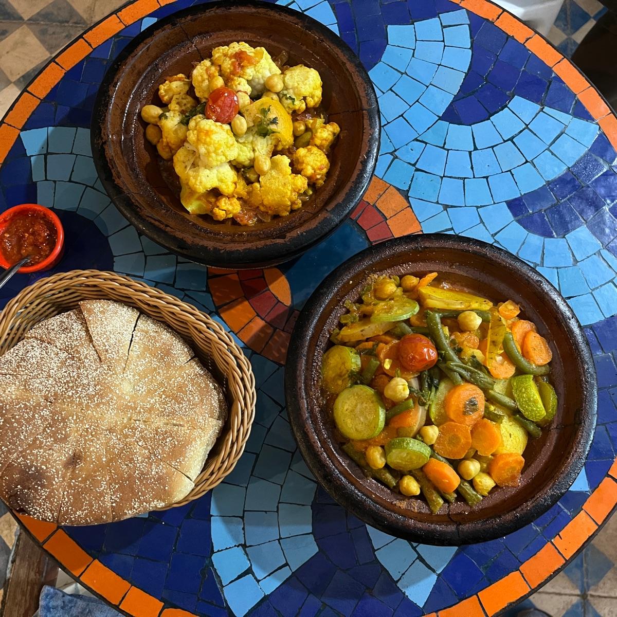 🇲🇦 Beautiful wholesome #moroccan #cauliflower tajine with #lemon. 🍋We both loved this one. The tajines came out bubbling and steaming and scarily hot. 🔥♨️It’s quite dramatic when the lid to the tajine comes off. 40 MAD which is like €4. Amazingly cheap so we ended up ordering way too much food. Lovely woman running the tiny place. Indeed we had a long wait as they make everything from scratch here. Thankfully she didn’t have to go shop for any of the ingredients which I read can sometimes be the case. We weren’t ravenously hungry this time and there’s a complimentary starter of banana🍌 and 🫒olives to keep you going. #traditionalfood #african #veganrestaurant #saveveganrestaurants
