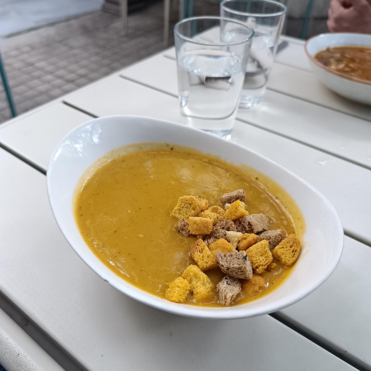 Dispone de un menú diario. Y pedi de primer plato la crema de verduras. Textura perfecta y muy sabrosa.