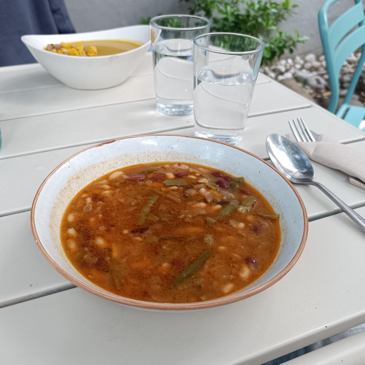 Para estos dias de otoño, estofado de judias blancas y verdes guisado con verduras. Delicioso