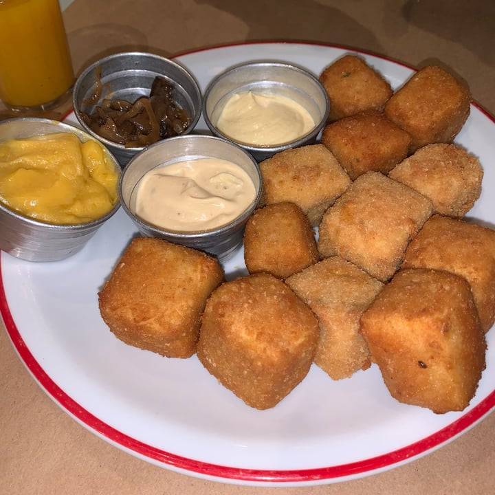 Las salsas son god, los nuggets a MÍ gusto falta escurrir el tofu antes de empanarlo. Pero bueno, para gustos… Colores.