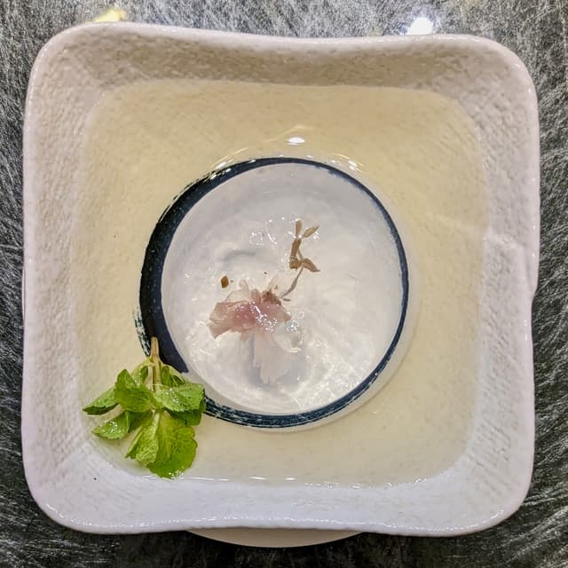 Japanese Kanten Jelly with Sakura Blossoms in Plum Vinegar