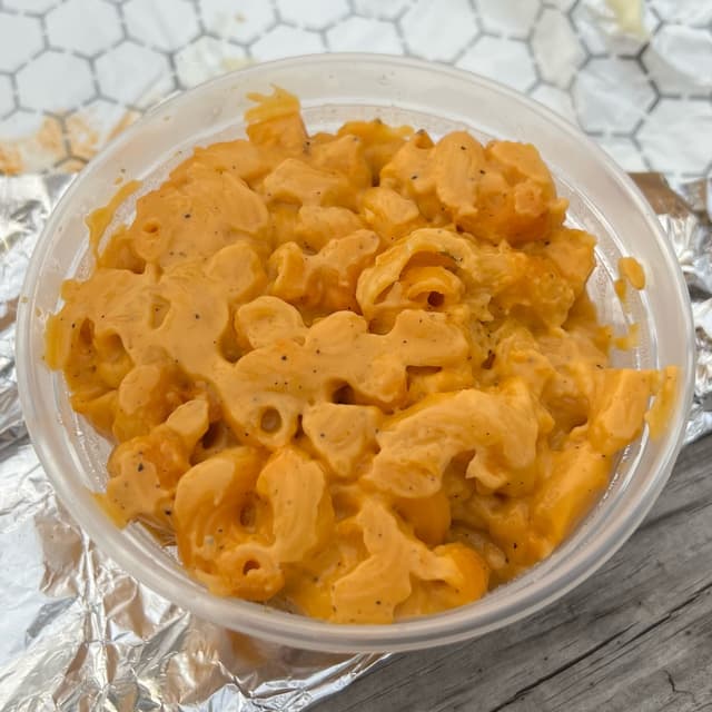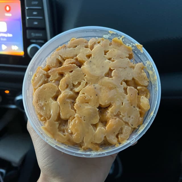 i do not know what they put into this mac and cheese, but it was one of the best mac and cheeses i’ve had to date. it came with a slightly above average elbow noodle that was fully coated in a thick, delicious, cheesy sauce that didn’t taste like a typical box mac and cheese. it was some sort of unique cheese blend that i really loved but also cant put my finger on. i thought the texture and flavor were both spot on; the cheese definitely felt high quality and made with care. i would definitely recommend ordering this as a side, my only disappointment was that there wasn’t more jammed into that container! *i did ask a nonvegan what the cheese tasted like because i have limited experience and they referred me to gouda?