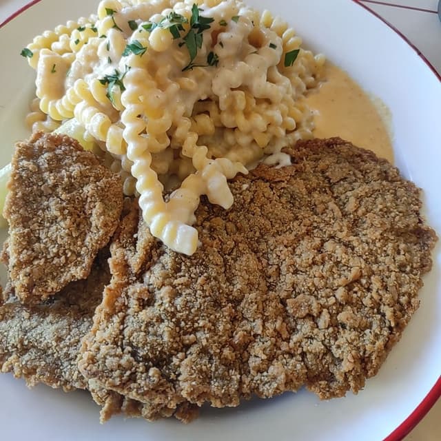 Otro plato espectacular. Realmente amo todo lo de este lugar. Las milanesas estaban espectaculares y los fideos con esa crema también