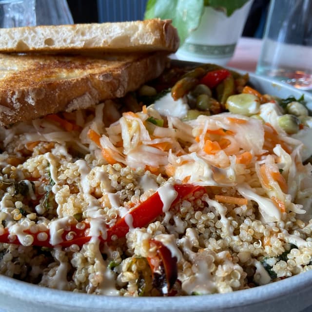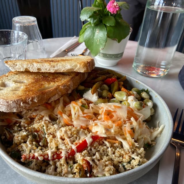 The mixed salad bowl on this day consisted of a broad bean salad, green beans in a rich tomato sauce, a refreshing spinach and cucumber salad, and a serving of red lentil koftas. Each dish was seasoned so beautifully and i imagine it’s not too bad for you either. Always fab having a dish full of Fabaceae am i right? We do quite like our legumes in this house, so this was quite the treat. The salad options change regularly, but each time i’ve had it’s been pretty awesome: Parle does pretty top-notch salads. #legumeLover #lentils #broadbeans #faba #fabaceae #greenbeans #saladbowls #buddhabowls #Fullyvegan cafe in #Chiswick with a pretty awesome menu. Cannot recommend them enough.
