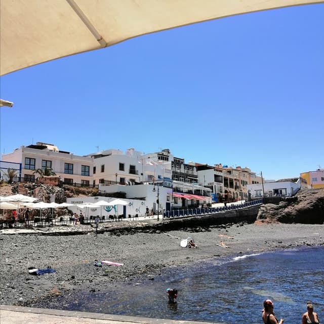 A "Callao" is a lava stone that has been rounded and made smooth by the sea - the black beach in view is made of such stones. The restaurant has an interior space and also a seating area on the old dock of the town. You literally cannot eat closer to the water! #foodwithaview #kimberleepower #refugiotheanimalacademy #pridemonth