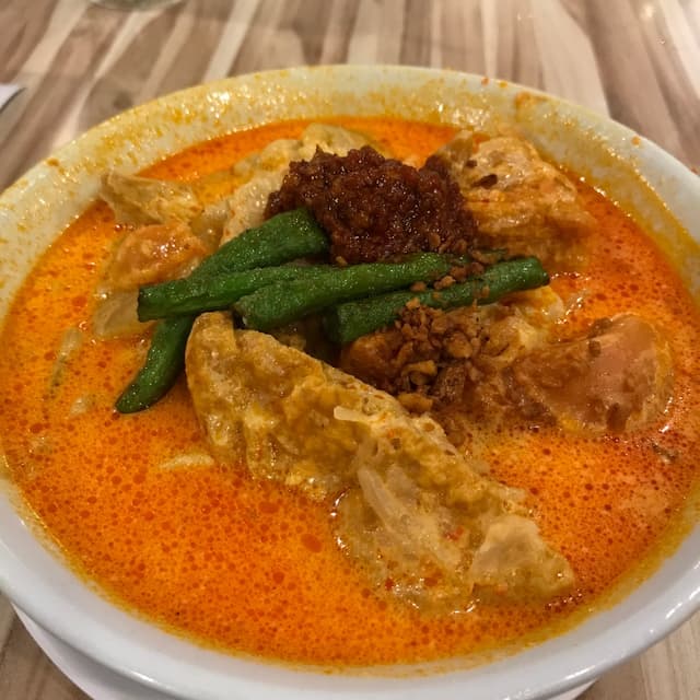 My favourite dish here. Thick and creamy broth with coconut milk and nice flavours. I ordered with spiciness level 3 and it was the best. The sambal chili on top was slightly sweet but it's ok. Generous amount of beancurd, veg and stuff. Love the lontong also, quite soft. Not a large bowl but filling.