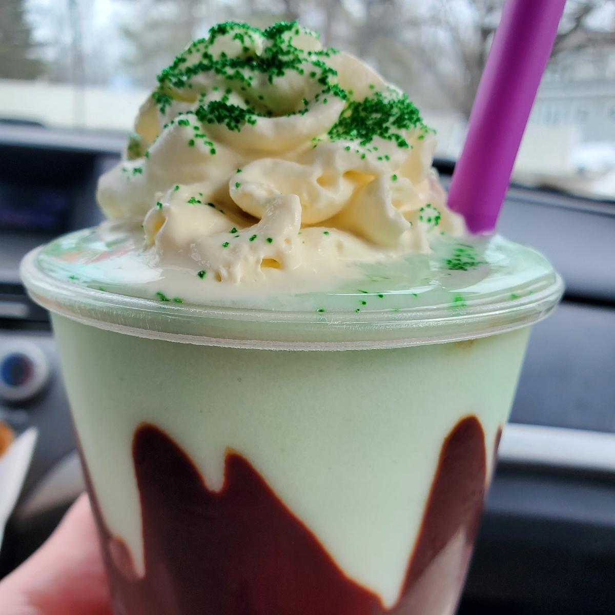 #drinkyourtoothpaste #shamrockshake #happystpattysday #stpatricksday #minty #mintshake #mintchocolate #oatbased #oatmilkicecream #oatmilkshake #chocolatemint #curbsidecomforts #eatingtoothpaste #isfun #greenjunkfood