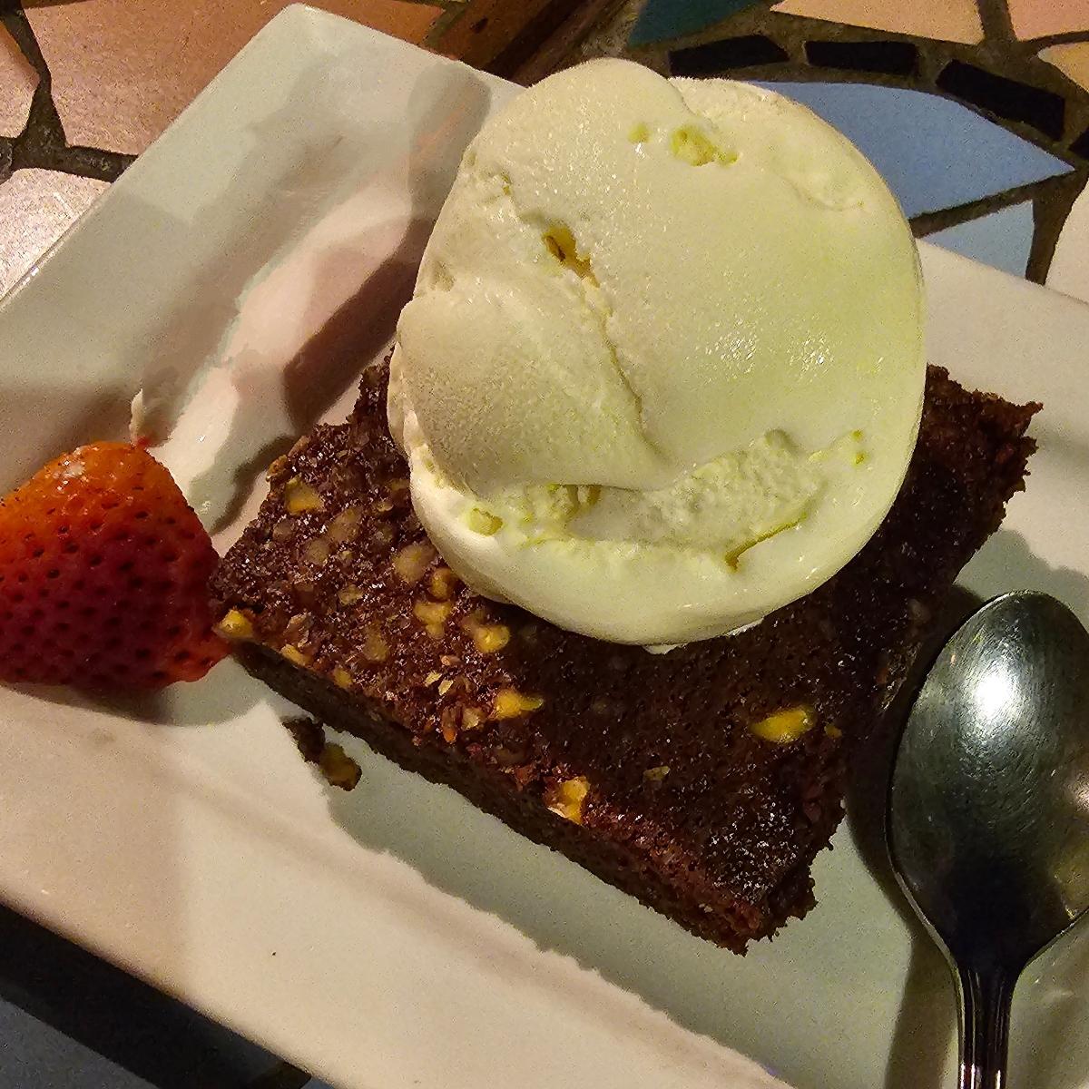 The ice-cream tasted more vanilla than coconut to me 🤔 🧐 Unless my tastebuds are mistaken. I'll give them the benefit of the doubt. The brownie itself was not bad, more crumbly and grainy than moist, but pleasantly so. Felt light and not overwhelming.