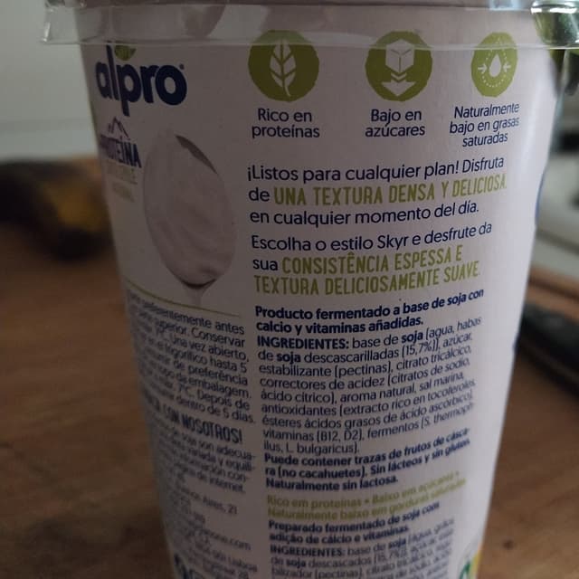 Yogur vegano a base de soja estilo Skyr, más denso y con más proteína. Está rico, una buena alternativa al yogur para desayunar, aunque algo más caro que otras marcas.