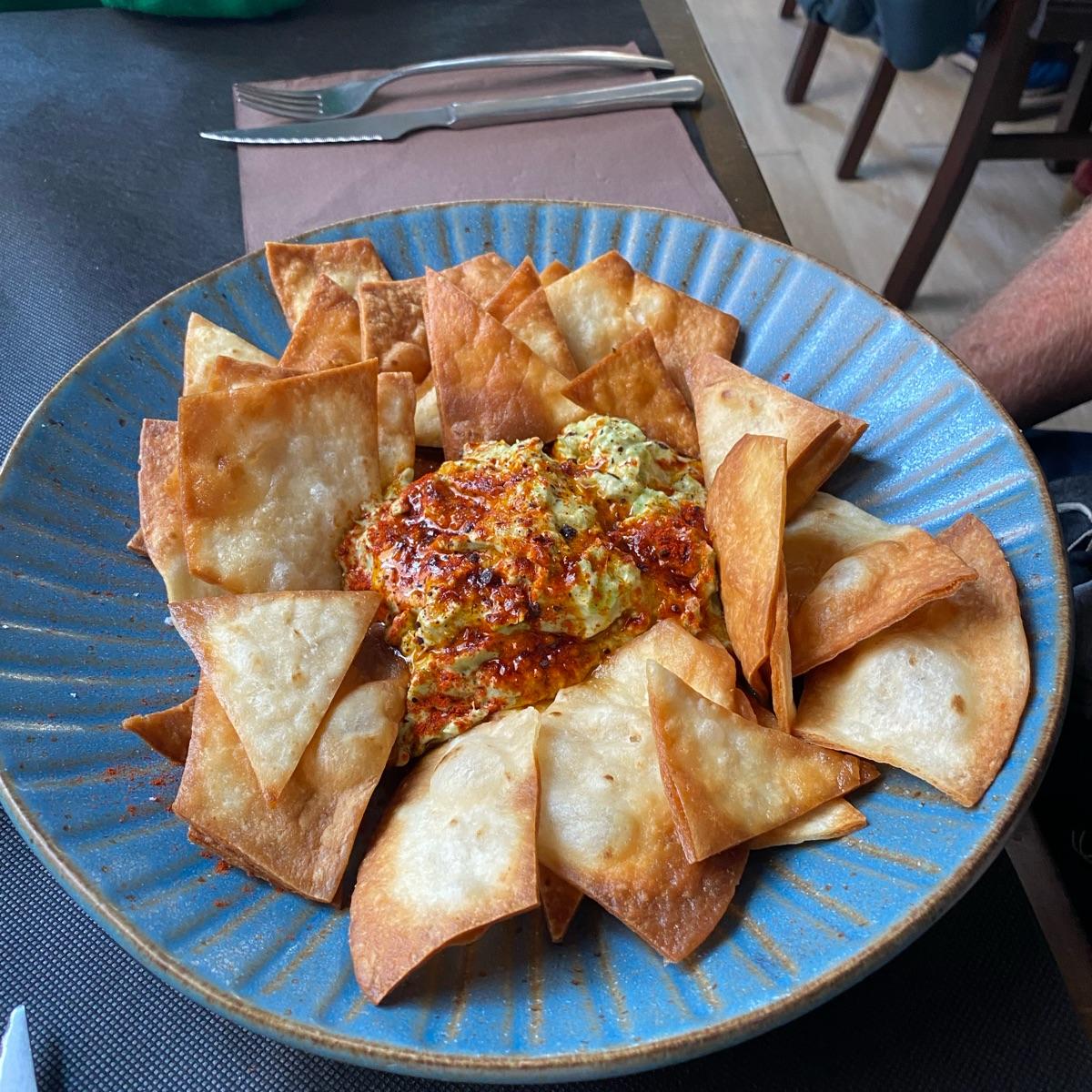 I’ve never had edamame hummus and this was good. The chips were crispy but deep fried of course, cancelling out the good intentions. Still I’d recommend this.