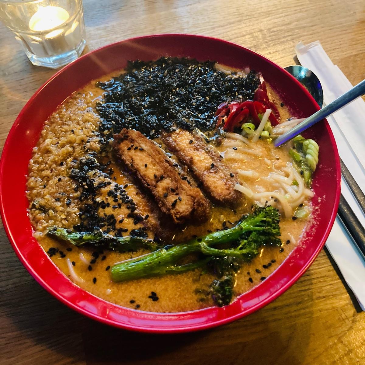 A really big hearty and filling portion. I liked that the broth was quite thick and rich, there was a nice amount of tofu, broccoli, and seaweed. The only thing I’d change is the noodles, I felt like they were a little tiny bit too soft. Other than that it’s a great dish and I thoroughly enjoyed it #ramen #noodles #saveveganrestaurants #veganrestaurant
