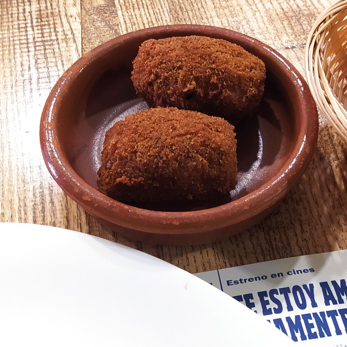 Croquetas de setas, puedes pedirlas por ración o unidad a 1.90 euros. Son muy grandes, pedí dos y me tuve que llevar la otra porque con el otro plato que pedí ya estaba bien. Es un local muy grande y suelen tener plato del día o menú pero en verano es solo carta.