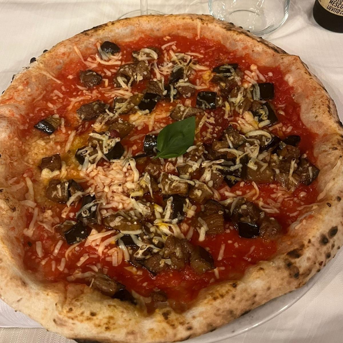 Pizza con zucchine fritte, olive e formaggio vegetale. saporitissima, con un impasto soffice davvero ottimo!