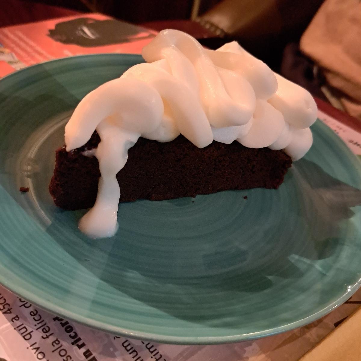 da provare assolutamente! è una torta al cioccolato e birra con una cremina spumosa e soffice, bella caldina e ideale per finire una cena... anche quando si è molto pien3