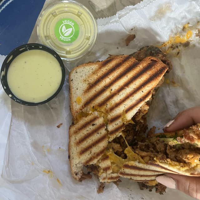 I used to frequent this spot when I was working in midtown and loved it. I was craving a pesto panini today, and in hindsight, I should have just gone to the grocery store and made one. UT47 is pretty out of the way for me now, but I went anyway. While the customer service and presentation are always exceptional, and the sandwich didn’t taste bad… it was missing a few things. There was no pesto and no avocado at all. Maybe 2 arugula leaves… There seemed to be extra soy curls and cheese to make up the difference. Thankfully it also comes with a side matcha sauce, otherwise it would have been very dry. I was disappointed because of the aforementioned pesto craving, but it wasn’t terrible and it left me with a full belly.