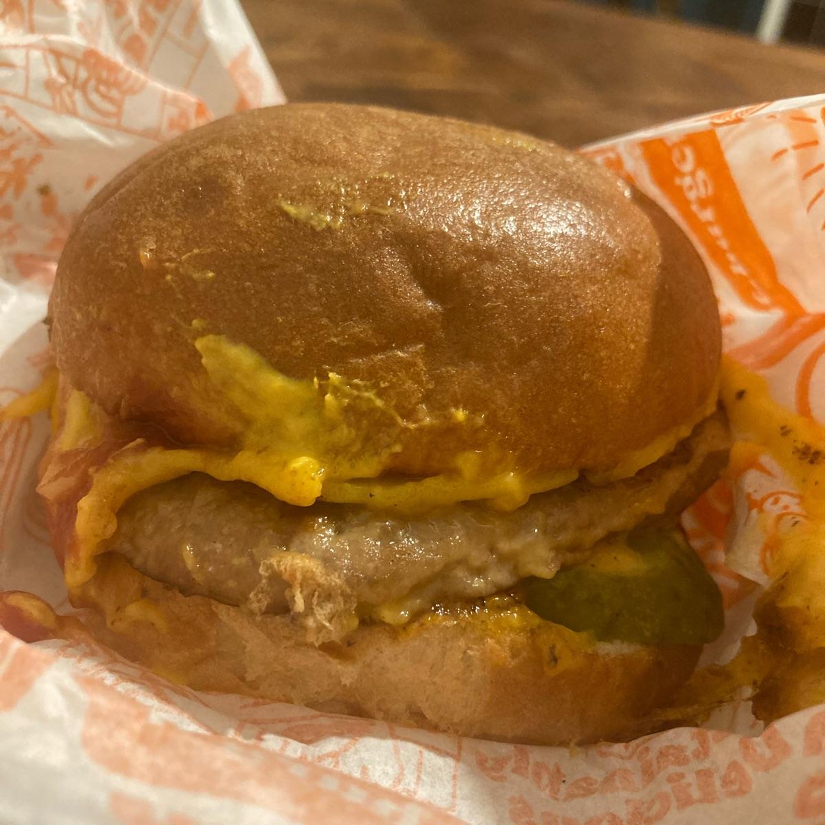 Ho preso un “cheeseburger” ed era ottimo, completamente soddisfatta! Il “formaggio” sopra era ben sciolto e filante , il burger buono e il panino soffice e morbido. Il locale è 100% vegan e quindi ci tornerò! Super consigliato
