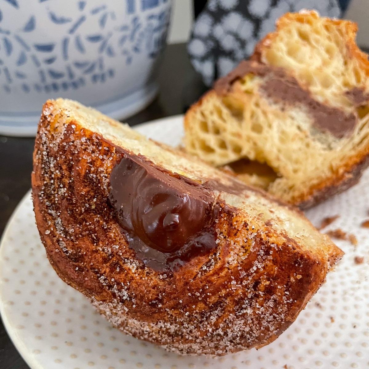 “Croissant dough swirled into a muffin tin, baked, then rolled in espresso sugar, filled with a dark chocolate espresso mousse.” (Menu description.)