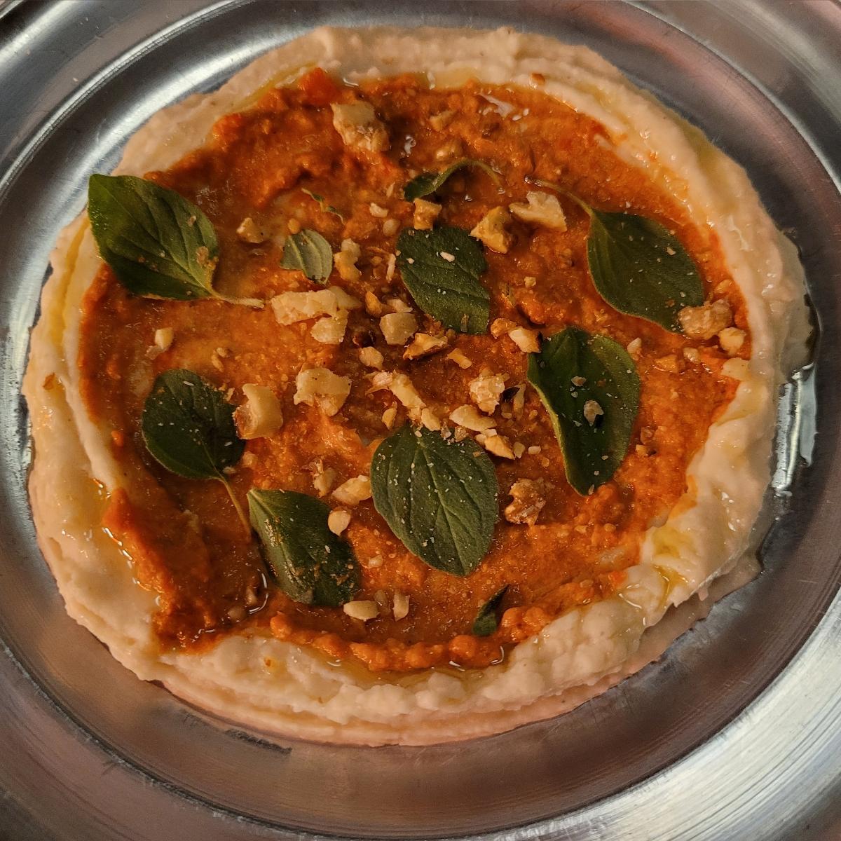 Untable de porotos pallares y pasta de pimientos asados con orégano fresco, perejil fresco y nueces picadas. Viene acompañado con pan de masa madre. Muy rico. La porción es un poco chica. Precio a octubre de 2023 $1900