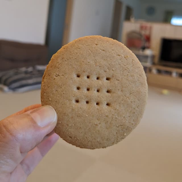 米粉を使用したグルテンフリーのクッキー。 サクサクしていてとっても美味しい。 アインソフ銀座店で娘が購入しました。 甘さ控えめで丁度良いです。