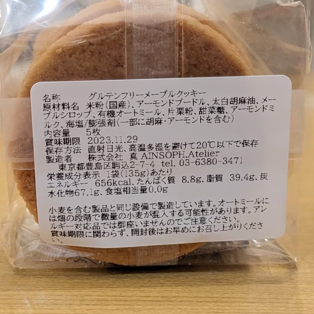 Gluten-free cookies made with rice flour. It's crispy and very delicious. My daughter purchased it at the Ain Soph Ginza store. It's not too sweet and it's just right.
