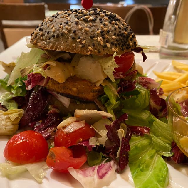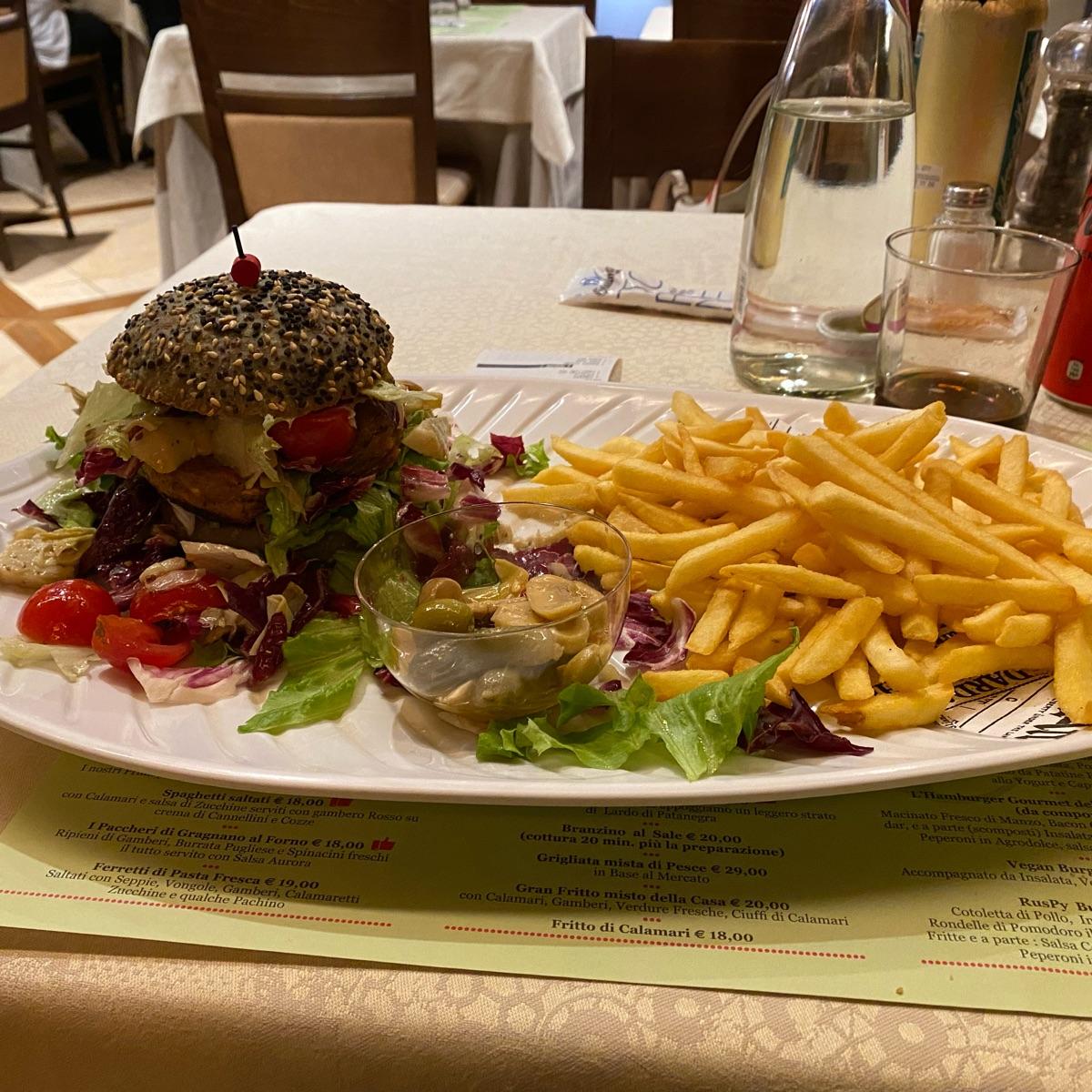 Il nome del ristorante prometteva male e infatti la proposta è cadaveri del mare e della terra a gogo ma più c’è un menu vegano con piatti fatti col cuore e che hanno scaldato il mio di cuore perché preparati con piacere ed offerti con le stelle negli occhi . Mi sono sentita rispettata nelle mie scelte e coccolata col gusto. 👅 #veganburger handmade come il pane. Porzione destabilizzante 😆😆😆😆😆😆😆 questo ristorante ha il piacere di proporre opzioni vegane molto gustose. Lovvvvvvv