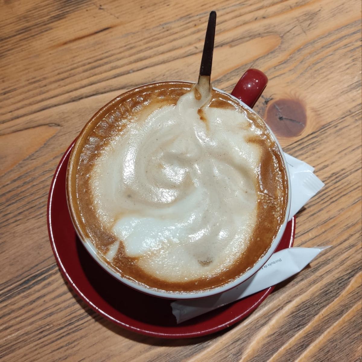 Classico cappuccino, buono, ci sono anche varie brioche vegane e un'opzione salata (wowburger). Il personale è molto gentile e il locale è super comodo essendo in stazione!