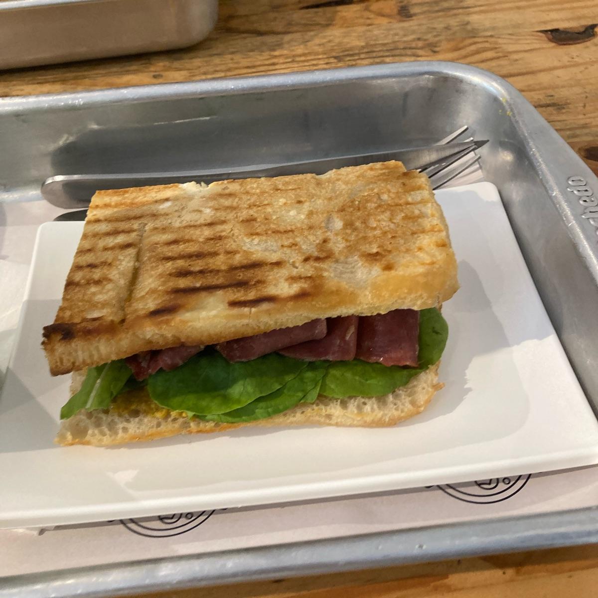 Adorei essa novidade do cardápio do astronauta café: focaccia recheada! É uma delícia, super recomendo! No recheio tem mostarda feita na casa, rúcula e