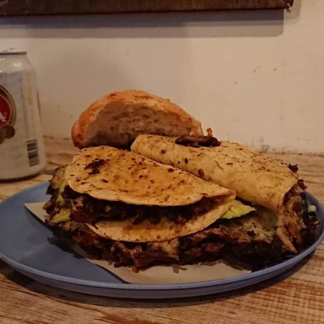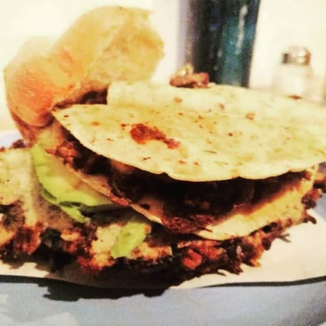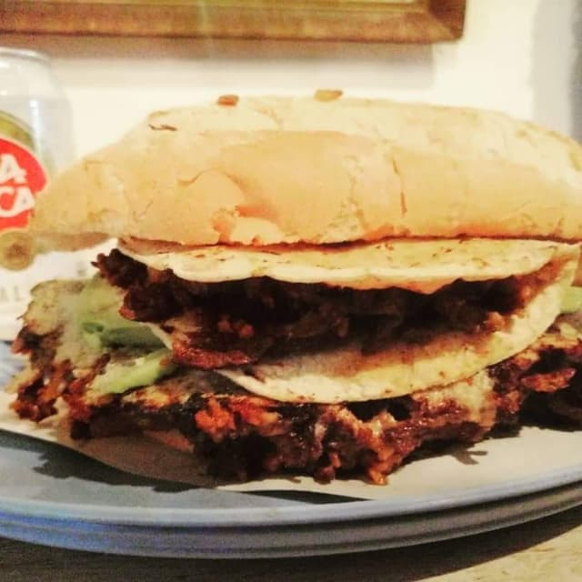 La Torta Grosera es algo exagerada pero deliciosa, excelente sazón de las "carnes" salsas y "queso"