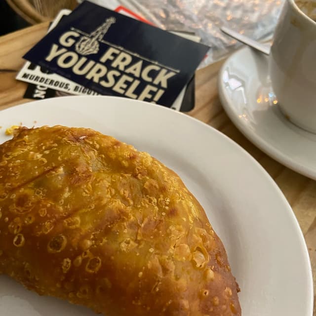 This Breakfast empanada was beautiful. Tasty, full of tofu, mushrooms, etc. I actually had not expected it to fill me so well, from its size. Well yummers. #empanada #breakfast #brunch