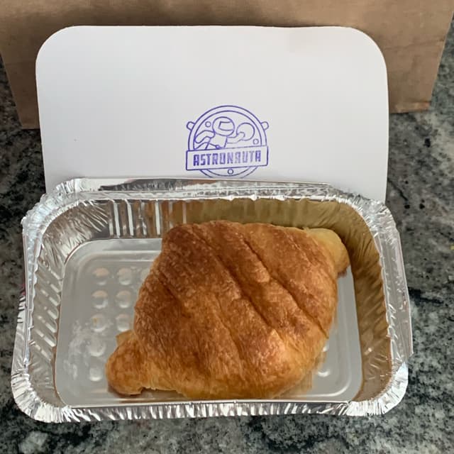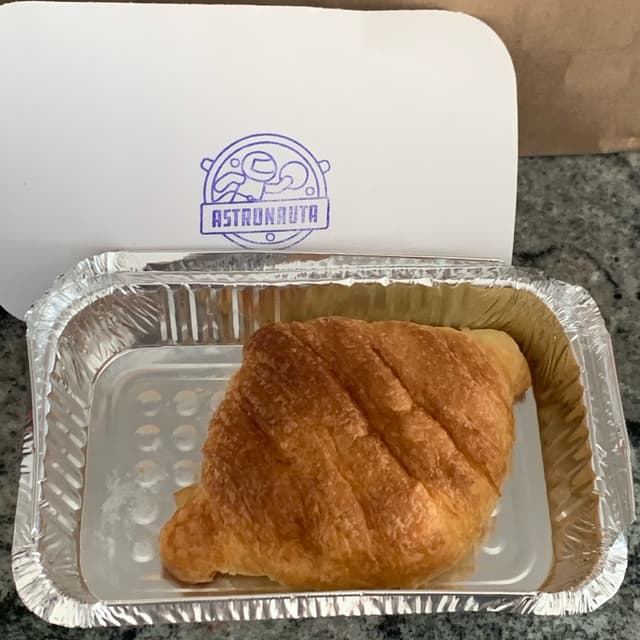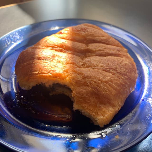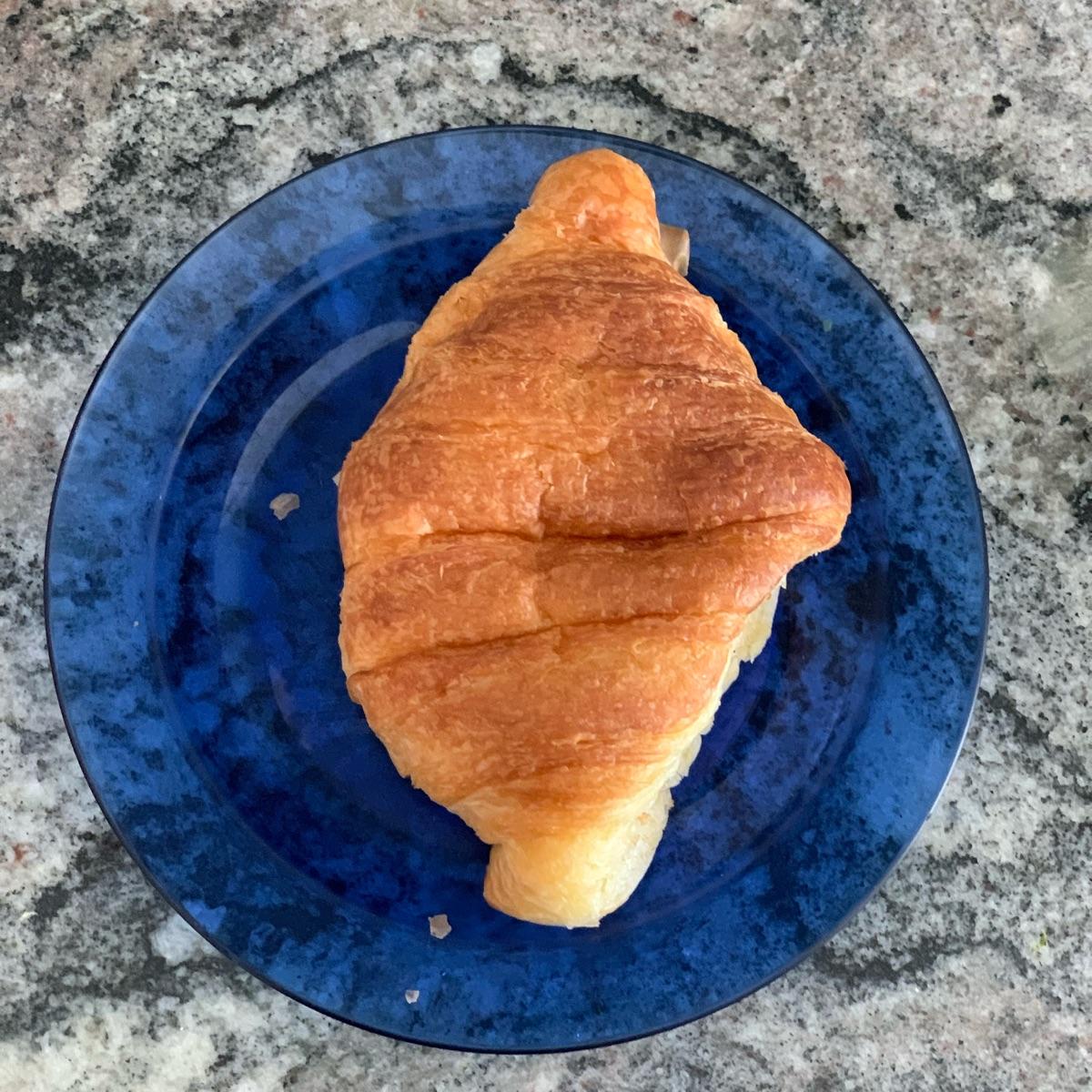 Enfim, um croissant 🥐 divino, bem folhado, servido quentinho (on demand), super saboroso, grande, macio… eu acabei trazendo para casa e coloquei de novo uns 2 minutinhos no forno, depois abri e passei a minha geleia de mirtilo 🫐 bem azedinha para quebrar o sabor, que eu amo!