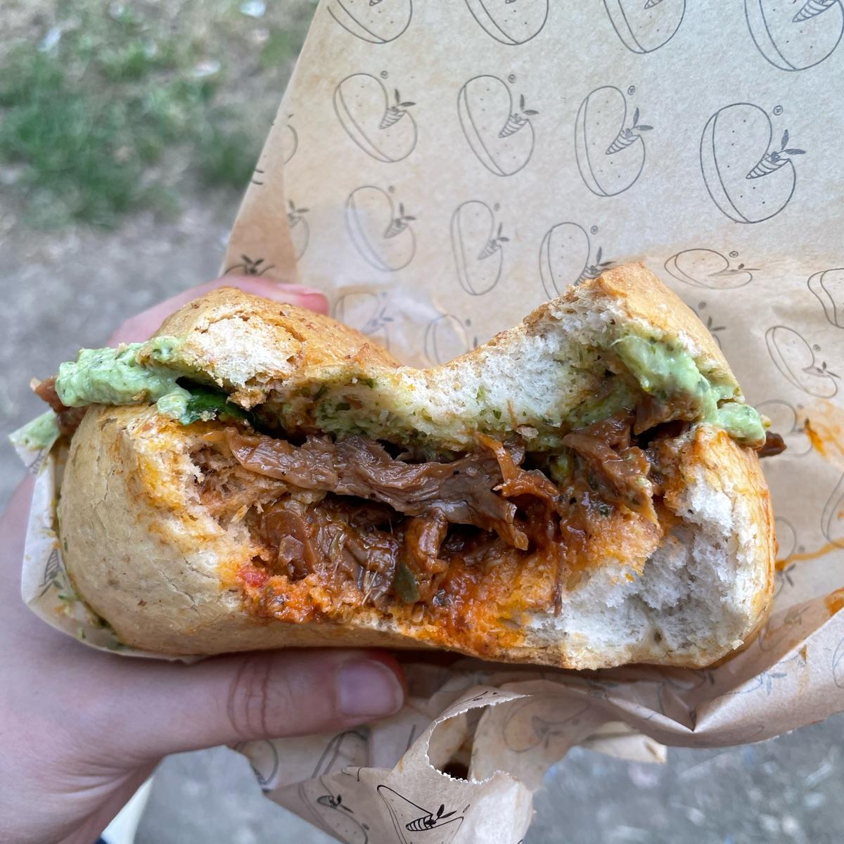 Non vedevamo l’ora di provarlo! Io ho optato per quello alla Guidoni e non me ne sono pentita!!! Con salsa verde Stonnata, meravigliosa, un panino da sogno 💜 Pane buonissimo, funghi morbidissimi, si sciolgono in bocca insieme alle olive e alla cottura nel pomodoro ☀️