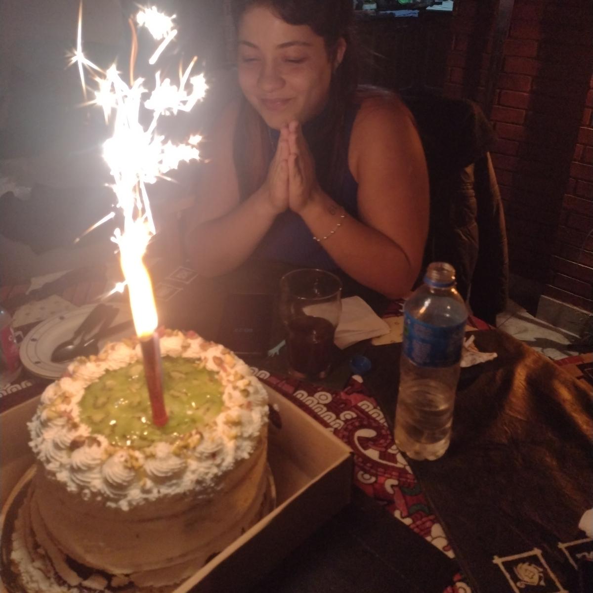 Una delicia! Las frutas son frutillas y kiwi, la masa sabor pistacho y crema. Deme mil!