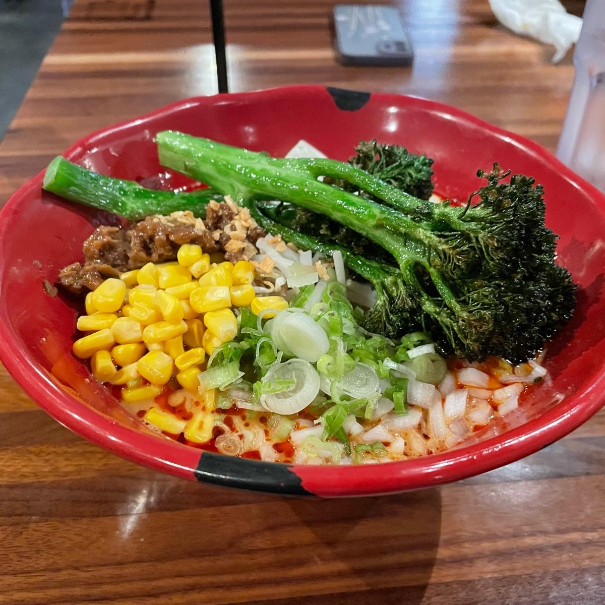 Several labeled vegan options at JINYA. This ramen was super tasty; the broth and noodles were delicious.