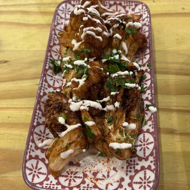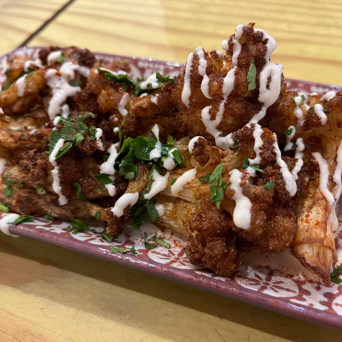 🥙 I can’t resist #cauliflower so when the server suggested that as a side I jumped. It was way too much food and I struggled to finish it. This was nice and served with some kind of a #tahini drizzle. Probably not my favorite version of fried cauli. It’s a cute place and very #veganfriendly. I’ve been meaning to visit for a long time. It’s run by a family and is independent so good to support them. #supportlocal #supportlocalbusiness The staff was very helpful. They have two vegan desserts with carrot cake and brownie. #middleeasternvegan #lunch