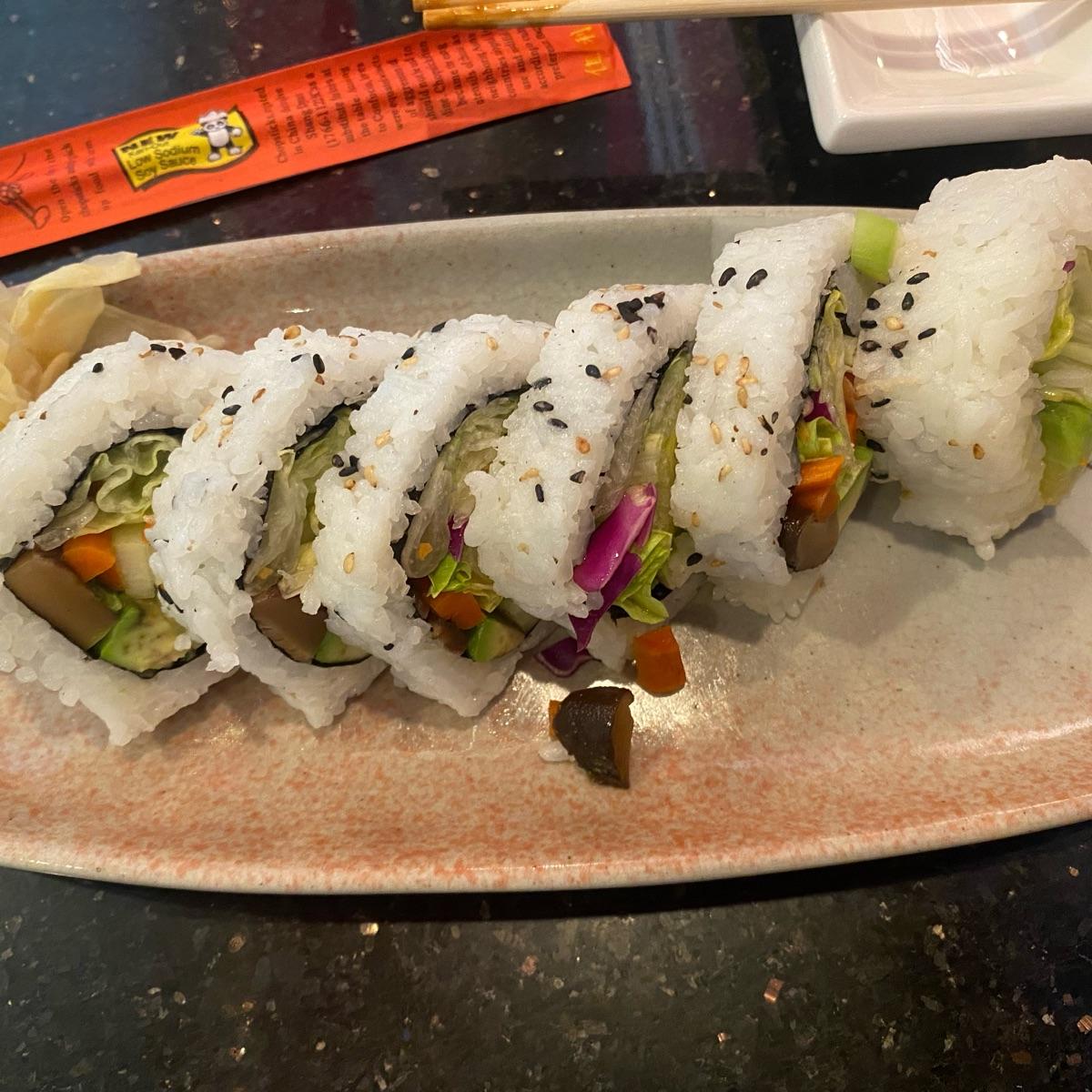 #delicious #veggiesushi that contained #mushroom, #lettuce, #carrots, #cucumber, and #avocado. It was too big to pick up with chopsticks and kept falling apart 😂 but it was because it was stuffed with delicious vegetables 😍