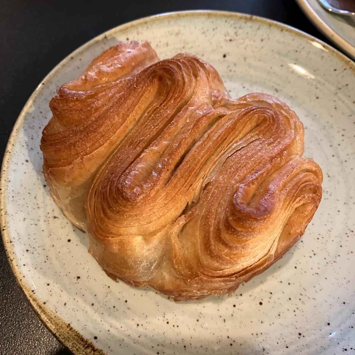 Sono una super noiosona e, amando i dolci poco dolci, la mia scelta finale ricade sempre sui grandi classici.. ho preso questo croissant intrecciato da abbinare al mio cappuccino d'avena, molto buono, umido e bagnaticcio all'interno come piace a me. Ovviamente i panificati non sono al livello dei nostri (troppo grassi) ma mi è piaciuto comunque molto e lo riprenderei!