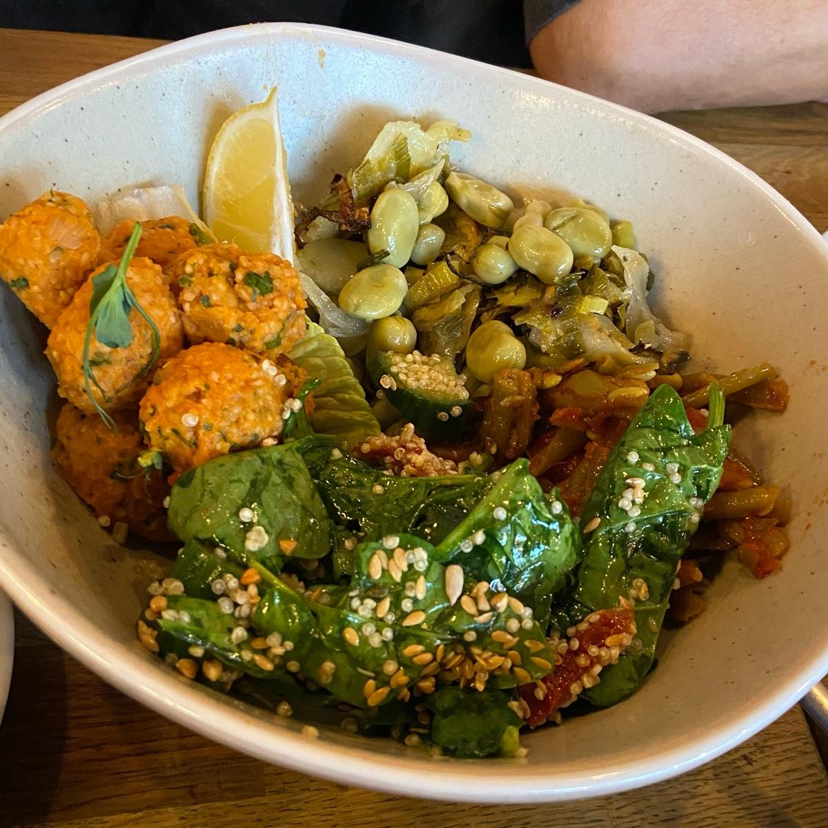 The mixed salad bowl on this day consisted of a broad bean salad, green beans in a rich tomato sauce, a refreshing spinach and cucumber salad, and a serving of red lentil koftas. Each dish was seasoned so beautifully and i imagine it’s not too bad for you either. Always fab having a dish full of Fabaceae am i right? We do quite like our legumes in this house, so this was quite the treat. The salad options change regularly, but each time i’ve had it’s been pretty awesome: Parle does pretty top-notch salads. #legumeLover #lentils #broadbeans #faba #fabaceae #greenbeans #saladbowls #buddhabowls