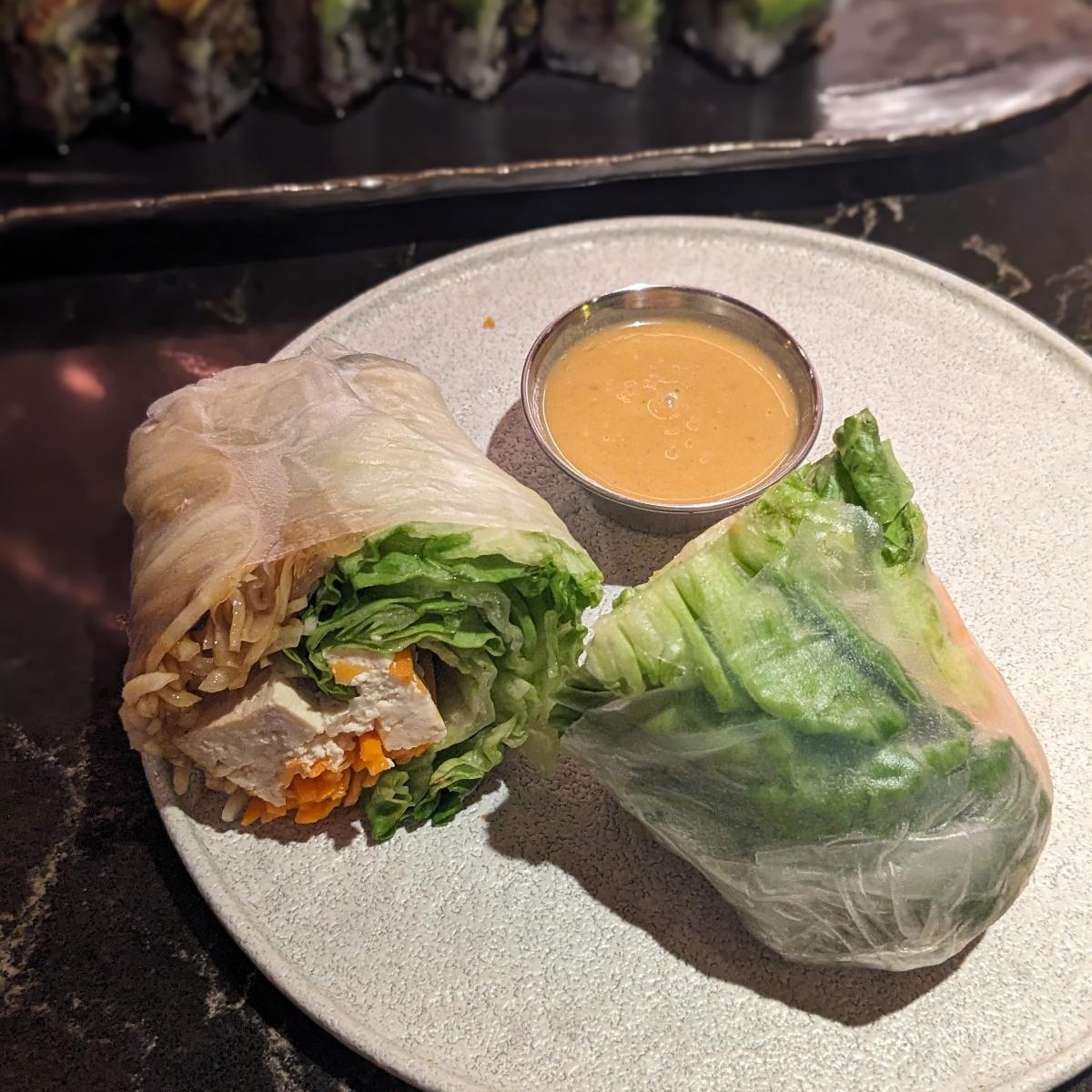 #summerrolls #ricepaper #tofu #tofulover #peanut #peanutsauce #appetizer #starter #cilantro #basil #lettuce #hoisin #papaya