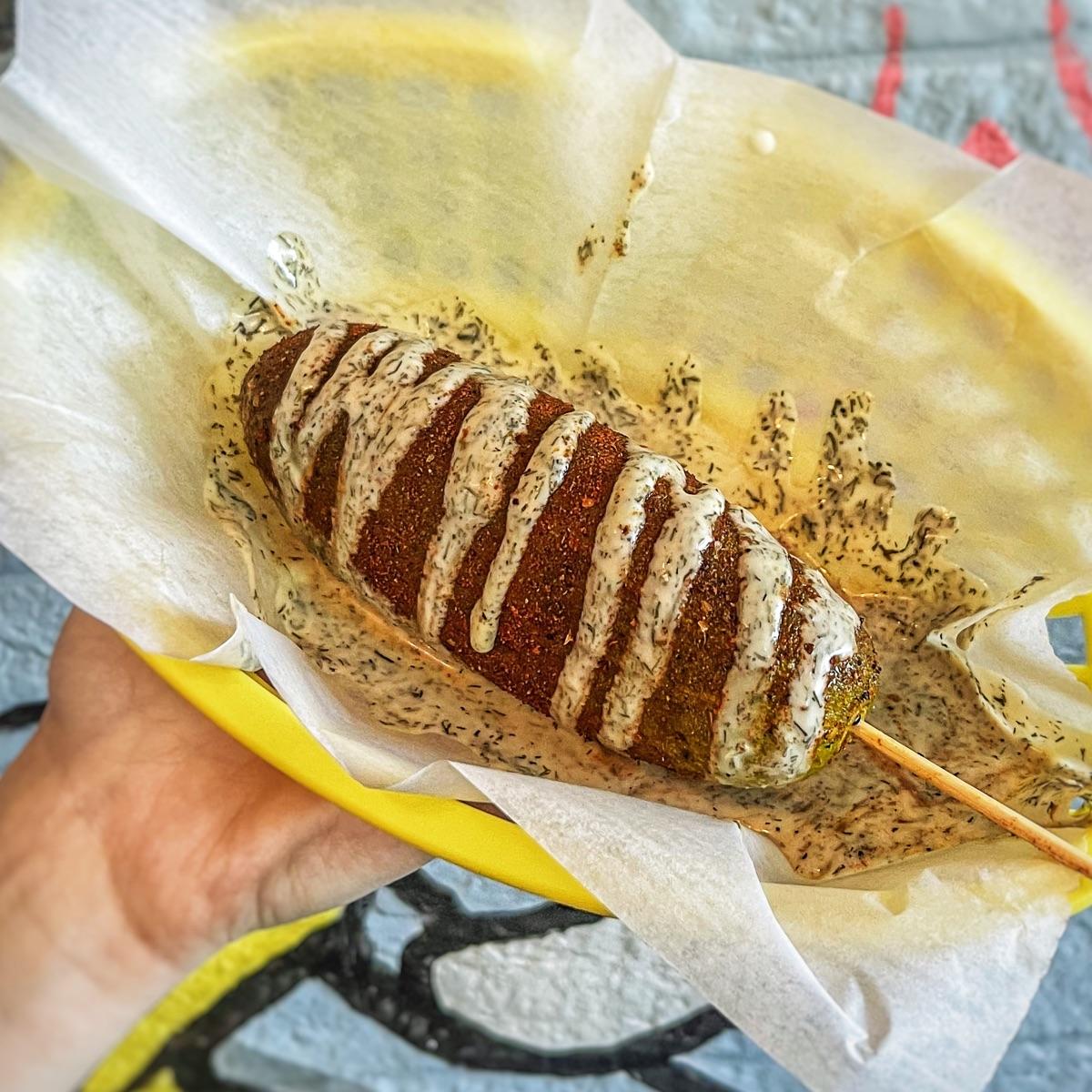 never had Nashville Corn before this and it was quite the experience haha, the corn on the cob is covered in spicy nashville “hawt” seasoning and generously drizzled in zesty dill ranch so it’s definitely a mess, but it’s a very unique try! 🌽🌶️ #saveveganrestaurants