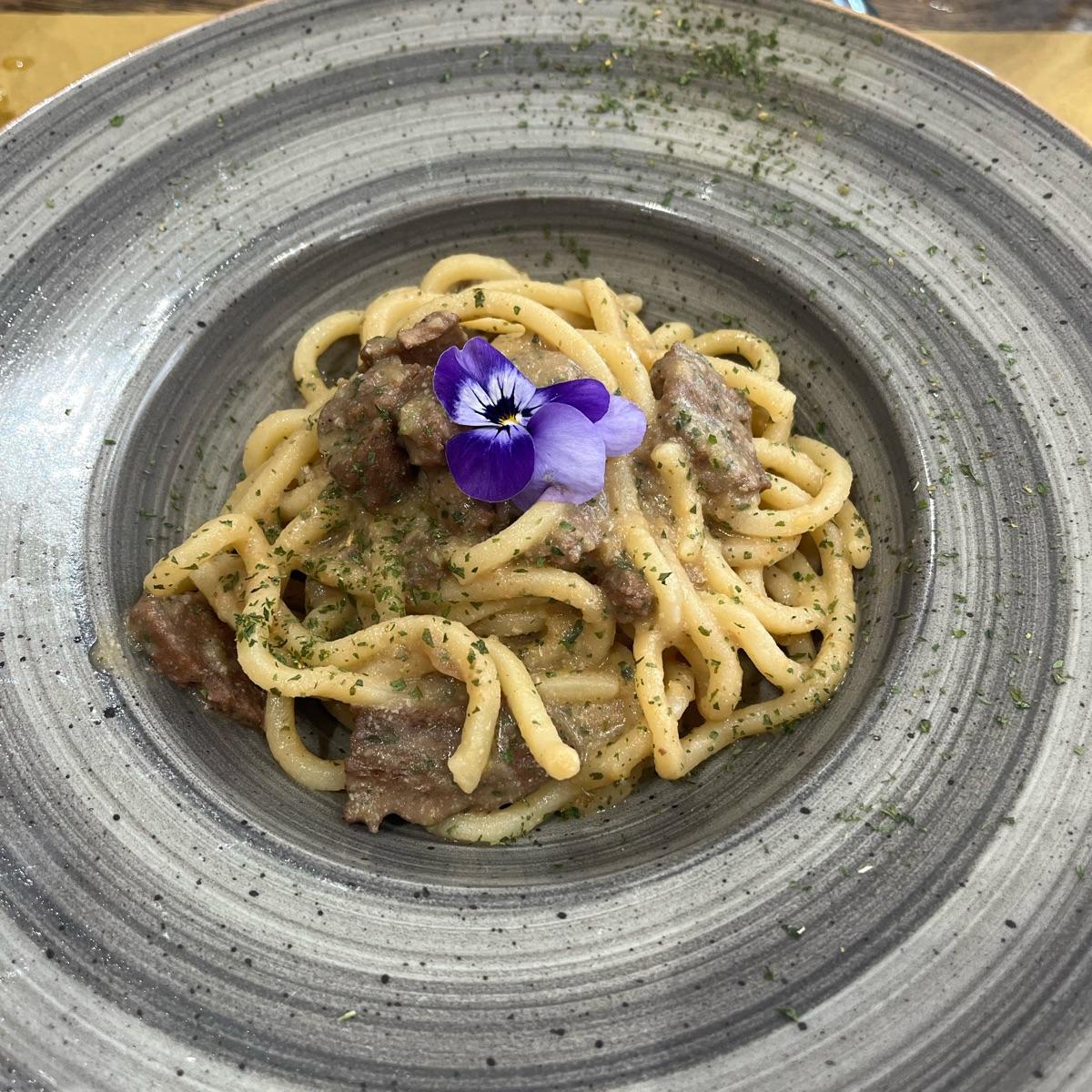 Vegan version of a Palermo dish - spaghetti pasta with brown stock of soy arrosticini and potatoes. This was very rich and the soy meat was nicely cooked - wouldn’t normally be my first choice of dish but it was great to get to try something new at this lovely vegan restaurant.
